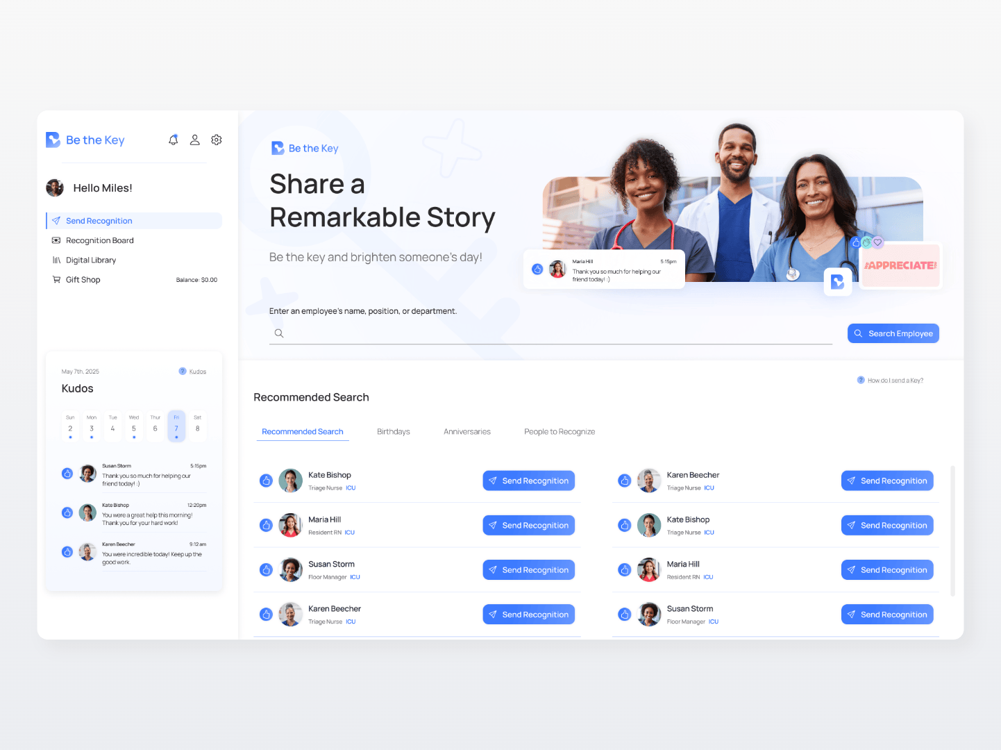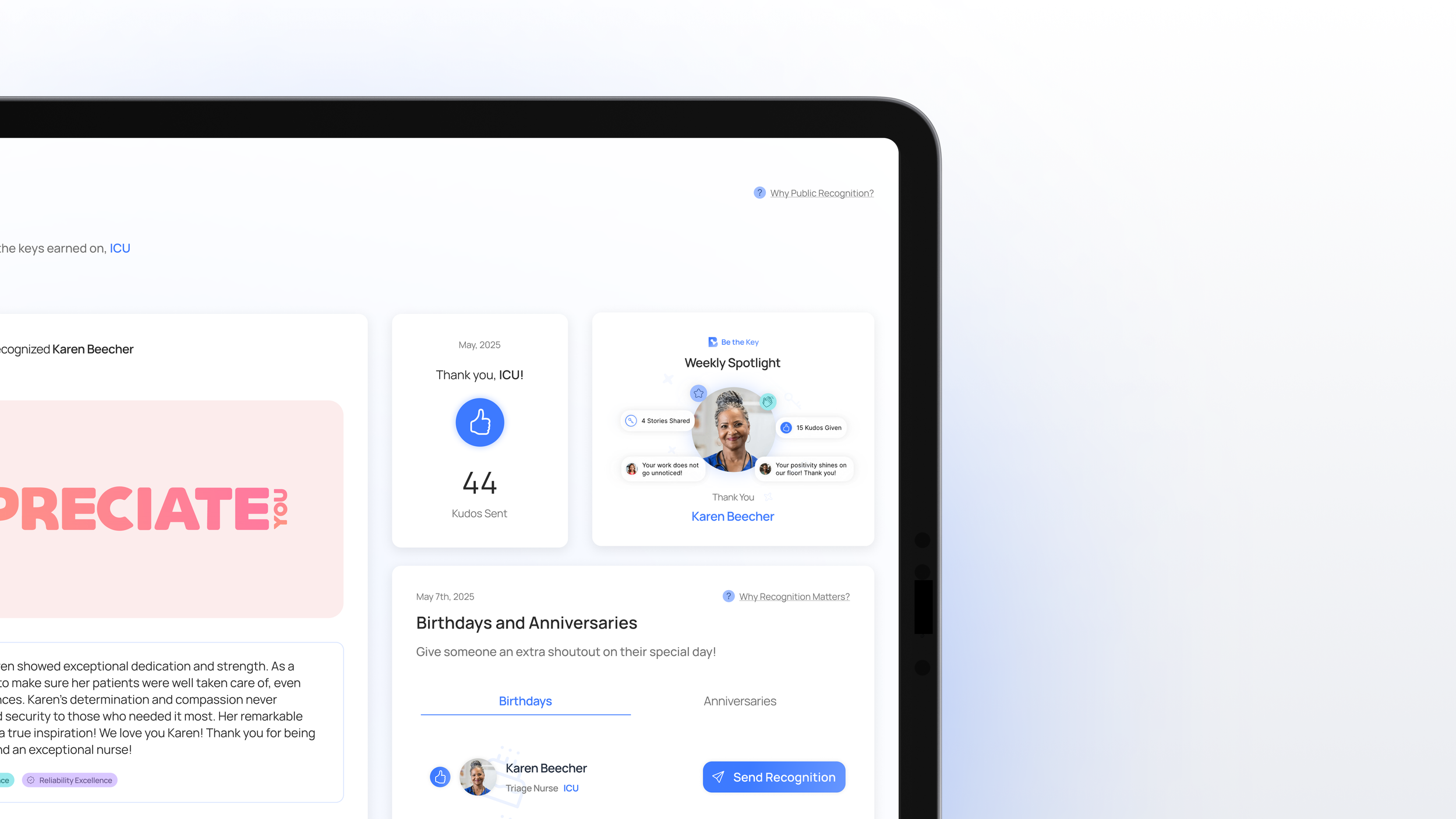Based on research at The Valley Hospital in Paramus, NJ, a user-centered recognition platform was designed and tested to spark gratitude and meaningful acknowledgment within clinical teams.